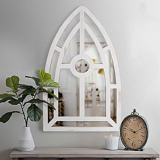 White Arched Wall Mirror with Black Trim *Free Shipping*